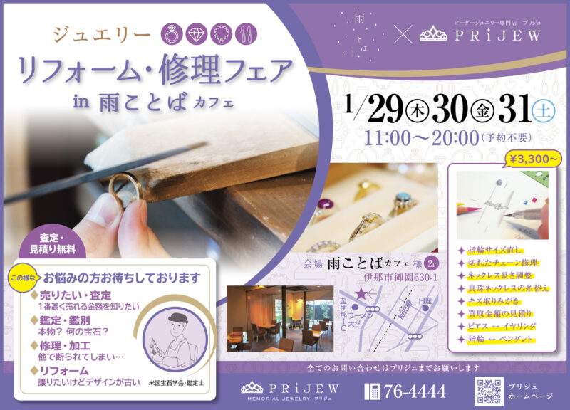 伊那市御園の雨ことばカフェ様の2偕にてお待ちしております。